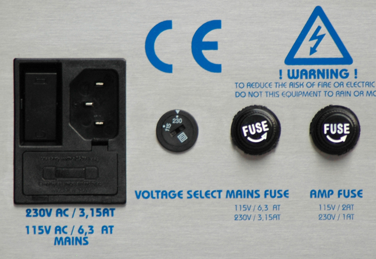 Das Beast Head ist für den Betrieb an 230V sowie 115V ausgelegt Wichtig dabei ist, dass die aussen am Gehäuse aufgedrucken Werte der Sicherungen eingehalten werden.