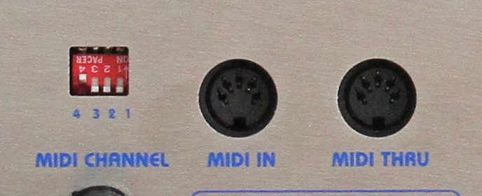 An der Midi Thrue Buchse werden alle Midi Signale 1:1 ausgegeben die an der Midi In Buchse anstehen.